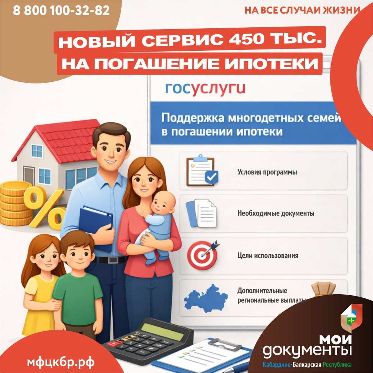 На портале "Госуслуги" запустили специальный раздел, где собрана информация о поддержке многодетных семей в погашении ипотеки