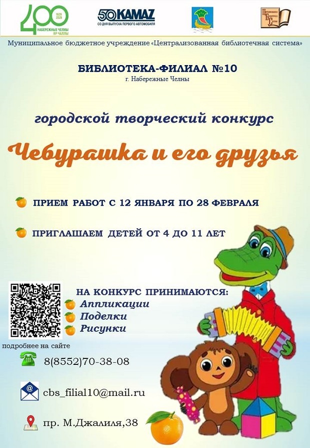 Телефон для справок: (8552) 70-38-08. Положение конкурса https://библиотека-челны.рф/konkursy-i-akcii/gorodskoj-tvorcheskij-konkurs-cheburashka-i-ego-druzya-0