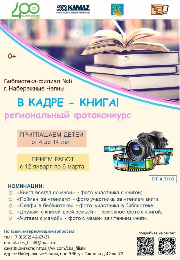 Электронный адрес: cbs_filial8@mail.ru Положение конкурса https://библиотека-челны.рф/konkursy-i-akcii/regionalnyj-fotokonkurs-v-kadre-kniga-0