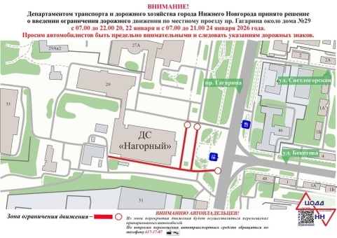 Ограничения движения транспорта будут введены на местном проезде проспекта Гагарина в Нижнем Новгороде в связи с проведением спортивных матчей. Проезд будет закрыт: