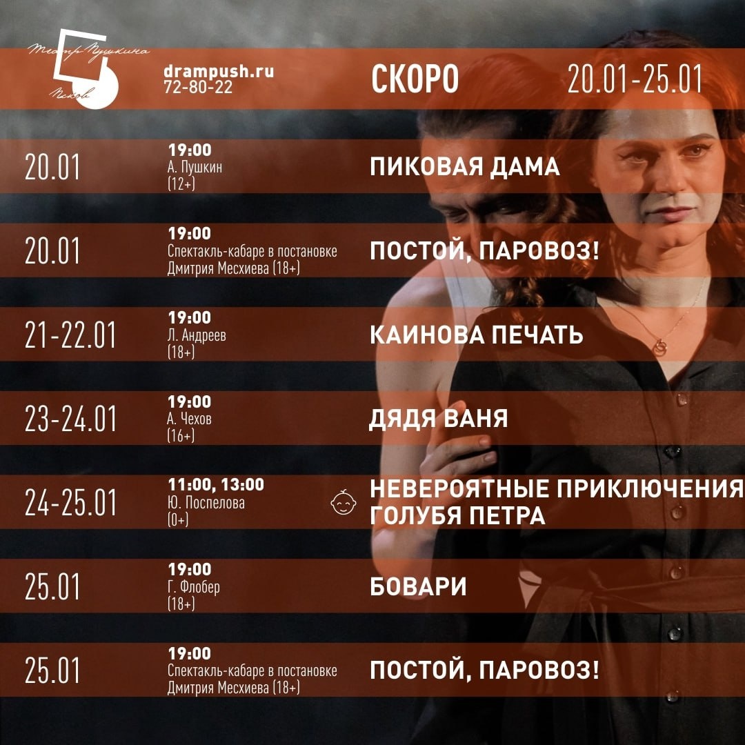 Театральная неделя в Псковском театре драмы им. А. С. Пушкина 20 – 25 января 🎭