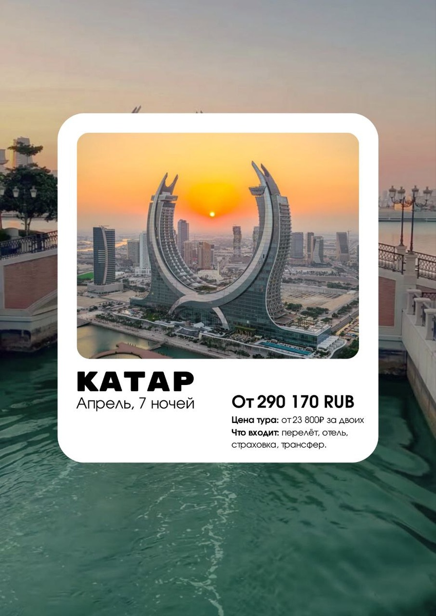 Здесь пустыня встречает океан, а прошлое — будущее. И всё это на одной набережной. Катар — это страна-мост. Пройдите по нему 😉