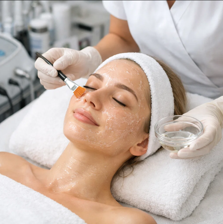 Кислотный состав наносится на кожу на строго определённое время. Он не «сжигает» поверхность, а работает внутри — регулирует процессы воспаления и обновления. Какой эффект даёт: