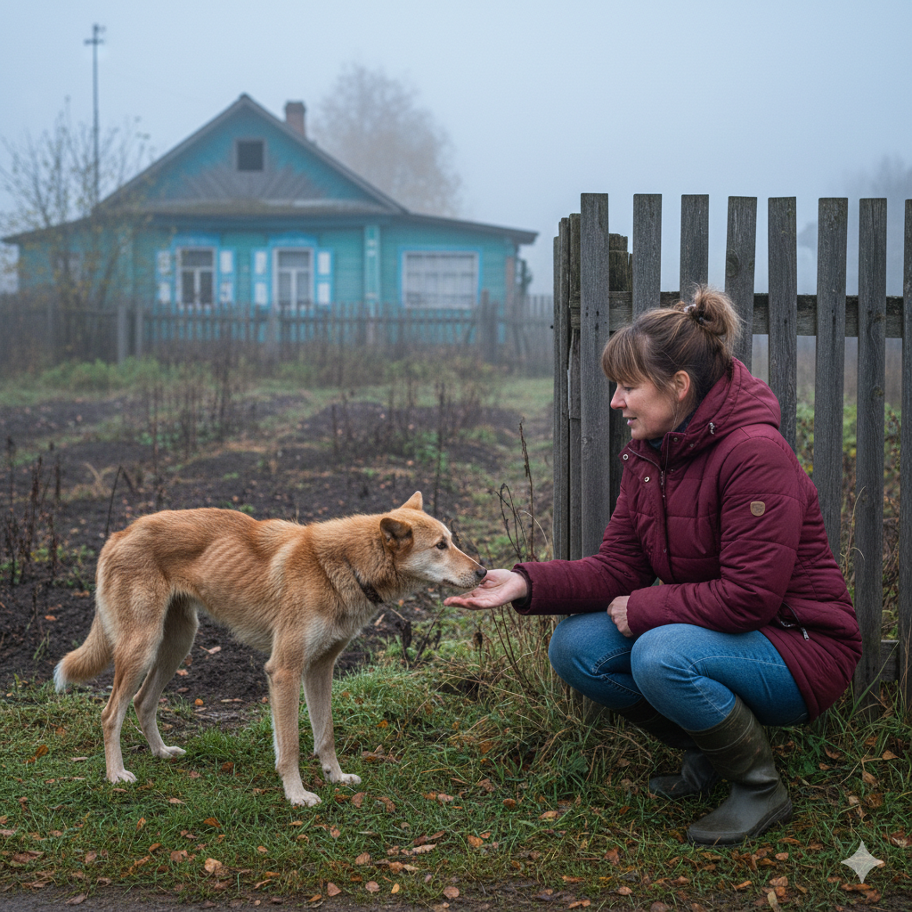 Анна впервые увидела собаку в конце октября, когда утренний туман еще стелился над пустыми огородами. Худое тело, торчащие ребра, глаза, полные такой тоски, что сердце сжалось. Дворняга металась у забора заброшенного дома на краю деревни, скулила, царапала когтями калитку.