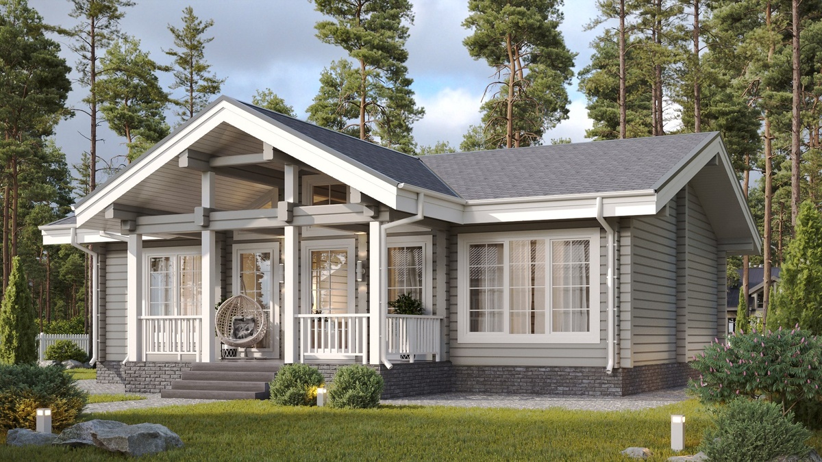 Характеристики: Материал стен: клееный брус Площадь: м2 Количество этажей: 1 Спален: Санузлов: Стоимость при толщине стены 175 мм: 6523911 руб Стоимость при толщине стены 205 мм: 7579012 руб В стоимость входит: фундамент из ж/б свай; изготовление и сборка домокомплекта; крыша из металлочерепицы с утеплением 200 мм, при этом стропильная система будет выполнена из сухой строганной доски; клееная окосячка с четвертью для дверных и оконных проемов. Ссылка на проект: https://komstroy-s.ru/doma-iz-kleenogo-brusa/odnoetazhnyy-dom-iz-kleenogo-brusa-po-proektu-rayt-120-2