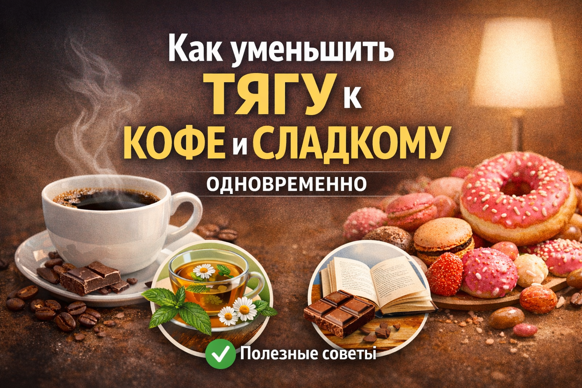 Самое важное. Замените кофе+сладкое на что-то приятное: любимый подкаст + травяной чай с мёдом (чуть-чуть!), красивая книга + тёплый плед, 10 минут музыки + тёмный шоколад 85–90% (1–2 дольки). Мозг переключается на новый источник дофамина.