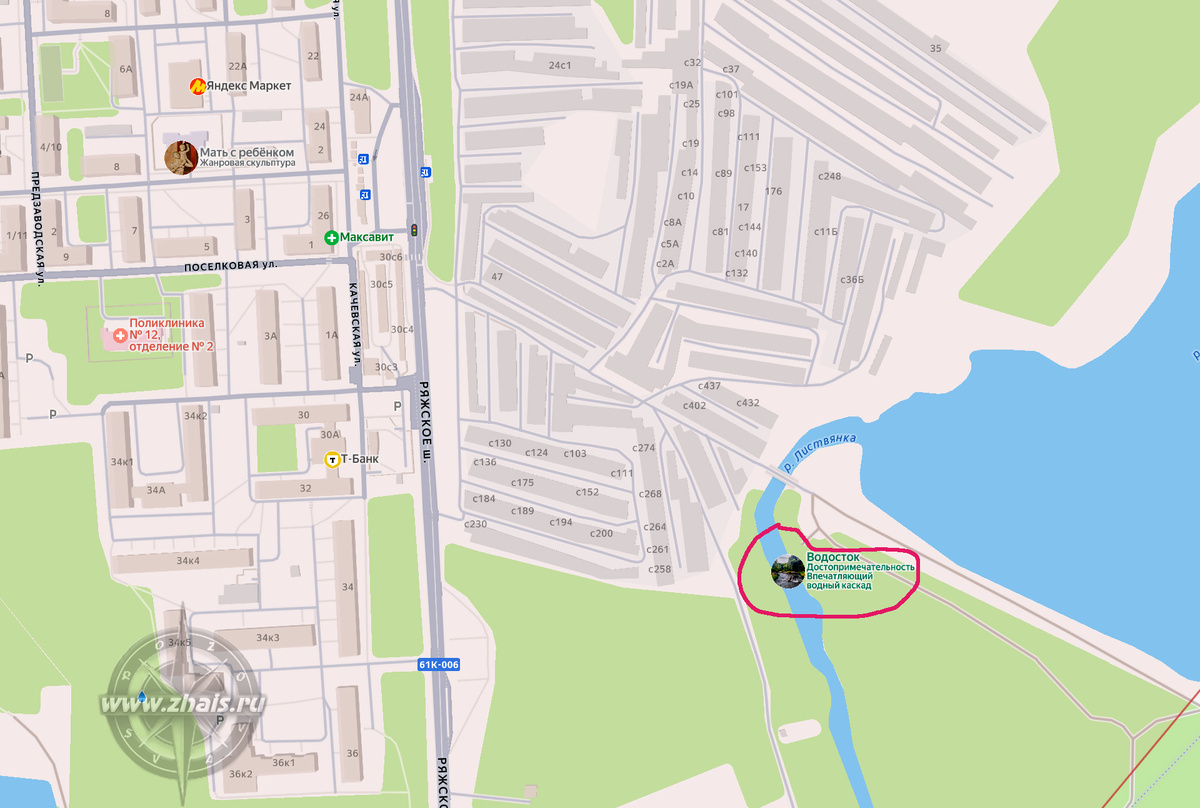 "Рязанские "водопады" - это такая небольшая фотозарисовка на тему некоторых гидротехнических сооружений, возведенных на р. Листвянка. Первое из них находится на территории областного центра, за гаражным кооперативом "Химик-2" (в месте с координатами: 54.531122, 39.789218) и приписано к микрорайону Турлатово. Однако, единственный способ добраться до него на автомобили - через микрорайон Строитель: следуем по Ряжскому шоссе до центральной (торговой) площади микрорайона и поворачиваем налево, в сторону гаражного кооператива, который проезжаем по прямой насквозь. За гаражами будет мост через Листвянку, которая в этом месте за счет плотины превратилась в широкий пруд, а справа от моста - наш "водопад" Второй "водопад" на Листвянке находится уже за пределами Рязани, в 20 км от города, в месте впадения Листвянки в Оку (54.576673, 39.993752). По трассе 61К-051, проложенной вдоль правого берега Оки проезжаем Лужки, минуем поворот на Глебово (там кстати находится городище Глебово, о котором