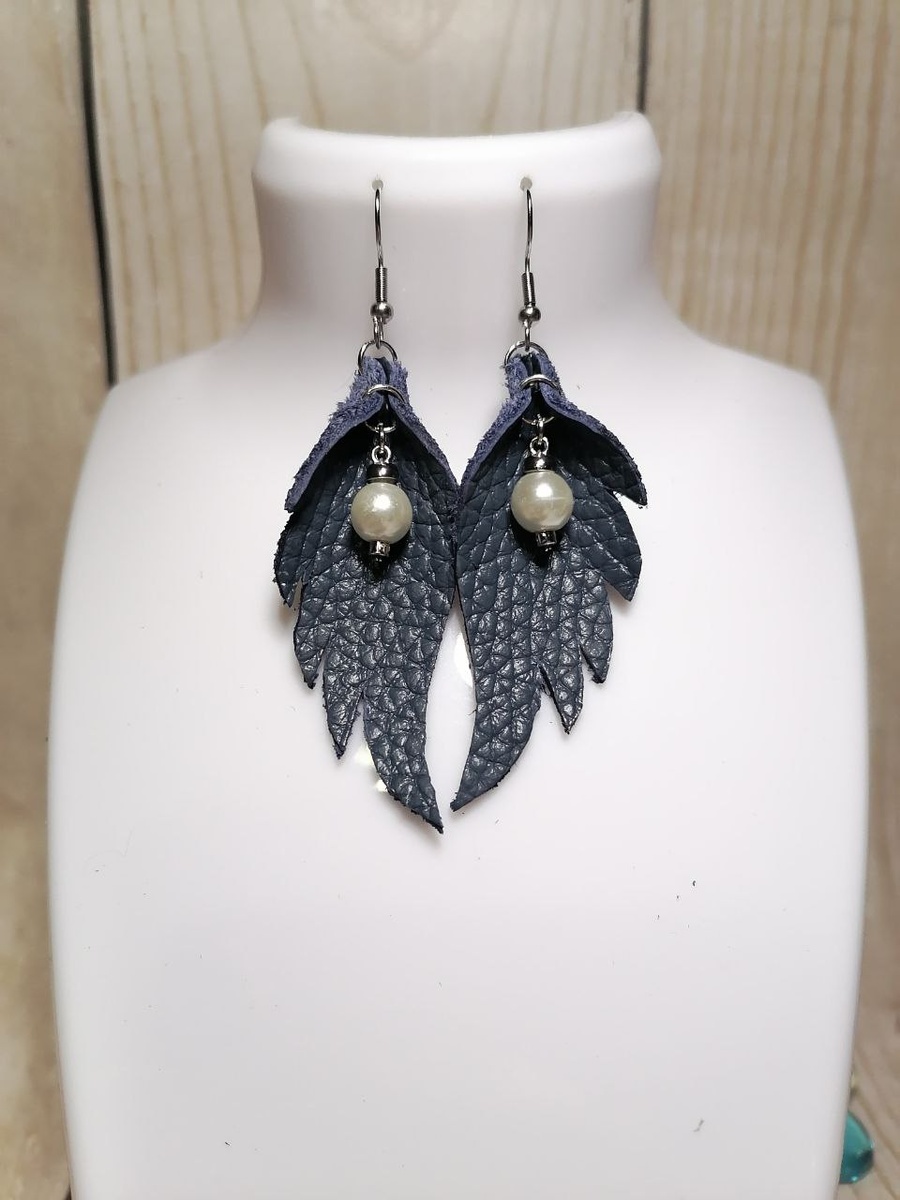 Эффектные кожаные серьги с жемчужной подвеской — подчеркнут индивидуальность.