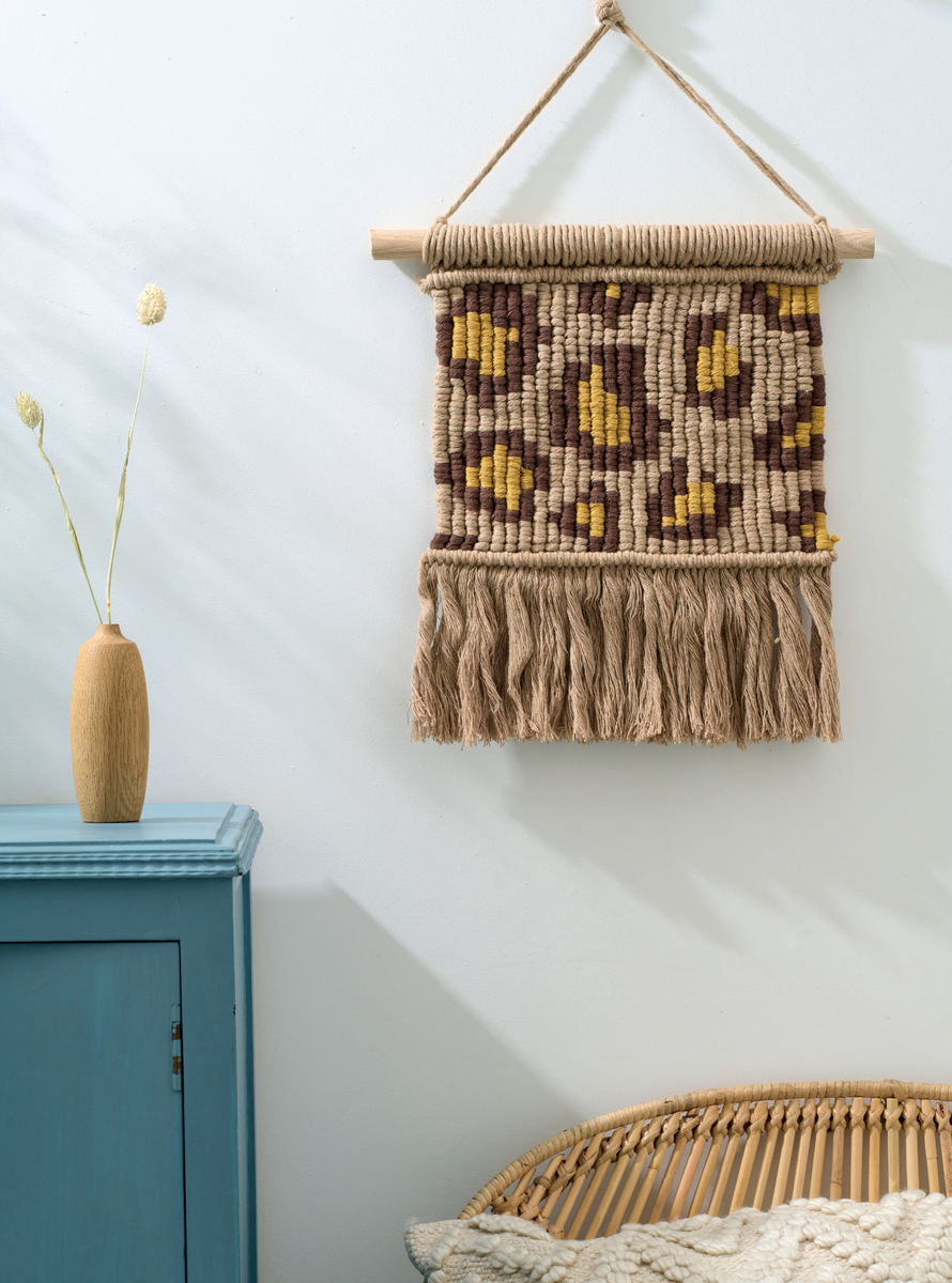Друзья, представьте: мы берём простую верёвку, добавляем цвета и создаём панно, которое выглядит как современная тканая картина с леопардовым узором. Это не просто декор, а настоящее пиксельное искусство, где каждый узел — как точка на экране. Плетётся по схеме, требует внимания к смене цветов, но результат — уникальный акцент для дома. Мы любим такие проекты за их экологичность: используем остатки верёвки и создаём что-то вечное.