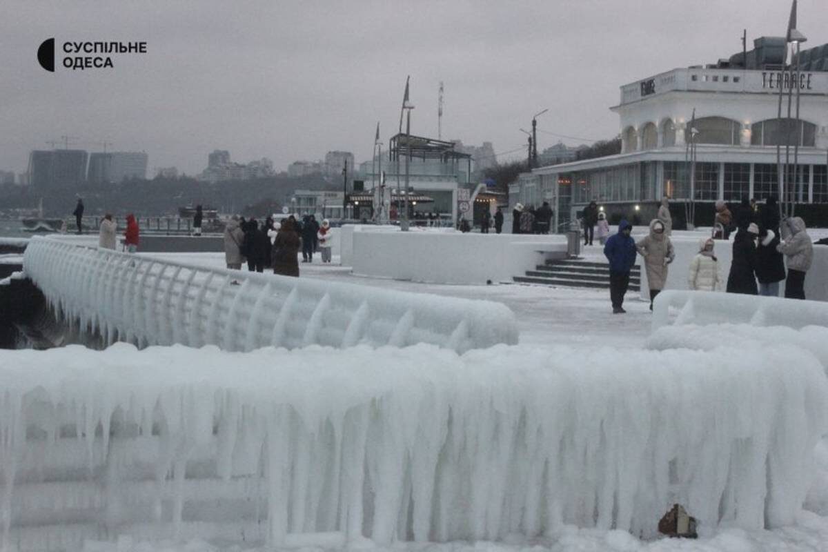Одесса замерзает без света и тепла, а пляж Ланжерон покрылся ледяной коркой.