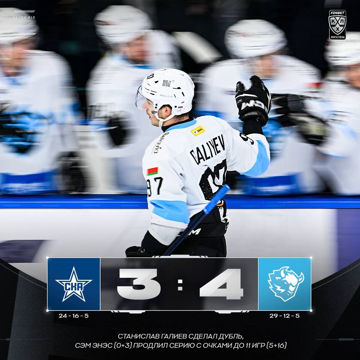 🦬 Дубль Галиева и три очка Энэса принесли минскому «Динамо» первую победу над СКА в сезоне!