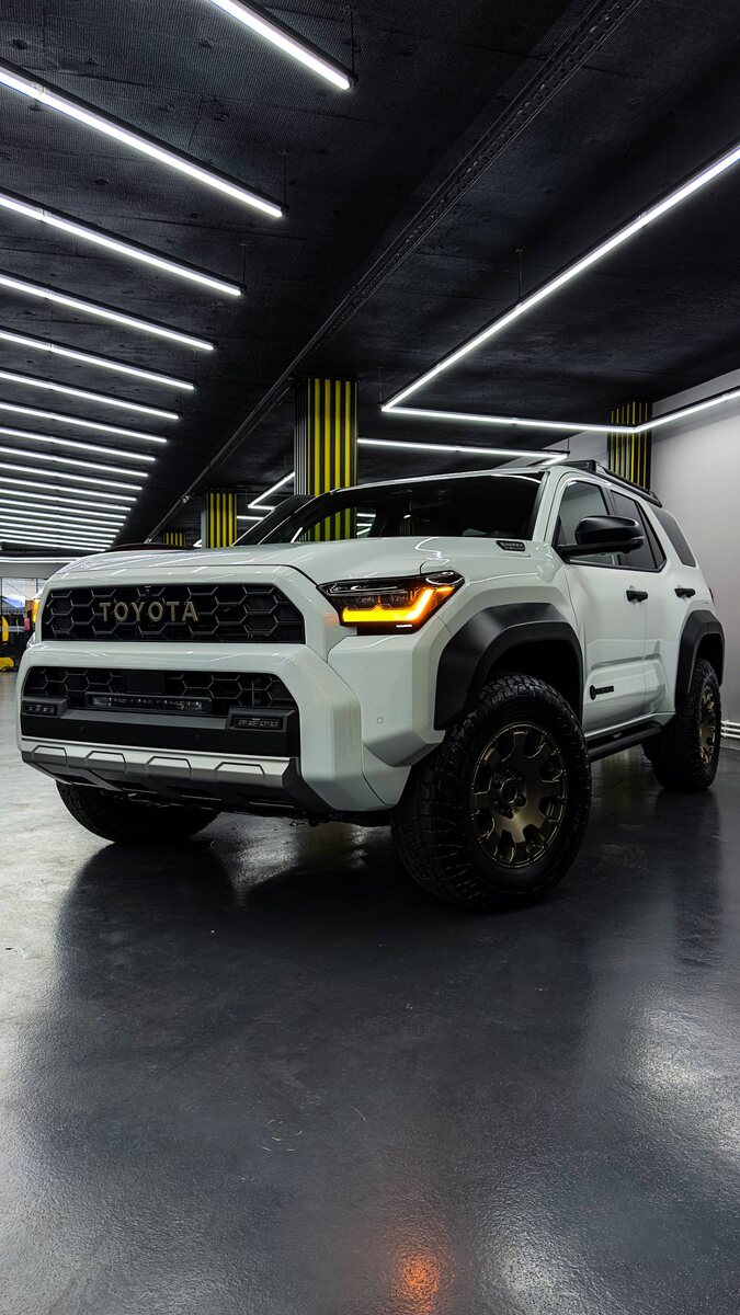 бездорожья за Полярным кругом. Привезён под клиента с оформлением на юр лицо на Центральной Акцизной Таможне г. Москва с полным НДС 20%. ♦️ Гибридный мотор i-FORCE MAX 2.4L + электродвигатель — 323 л.с. и всего 10.2 л/100 км в смешанном цикле ♦️ Полный арсенал для экстремального бездорожья: стальная защита днища, шноркель, полноразмерная запаска, усиленная подвеска Old Man Emu с регулировкой и выносными резервуарами ♦️ Дорожный просвет — 244 мм, отключаемый стабилизатор поперечной устойчивости и система Multi-Terrain Select с режимом Crawl Control ♦️ Салон готов к приключениям: водонепроницаемая обивка SofTex, розетка 120V и 4 разъёма AUX под допоборудование ♦️ Крыша с багажником ARB, внедорожные шины 33’ и фирменные LED-противотуманки Rigid Industries с переключением цвета (янтарь/белый) Как вам? Toyota 4Runner Trailhunter или пикап Tacoma Traihunter? #Toyota