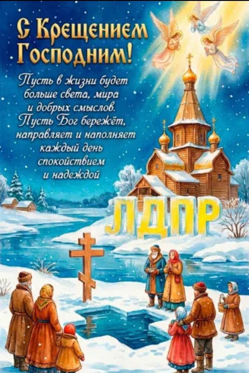 Пусть вода, освящённая сегодня, принесёт каждому свет, мир и благодать! Погружаясь в ледяные воды, мы очищаемся от всего негативного, оставляя позади тревоги и сомнения. Пусть этот праздник станет началом нового пути, наполненного добром, любовью и светом Божьим! Желаем вам крепкого здоровья, душевного спокойствия и исполнения всех благих желаний! #Крещение #ЛДПР #леонтьеванадежда