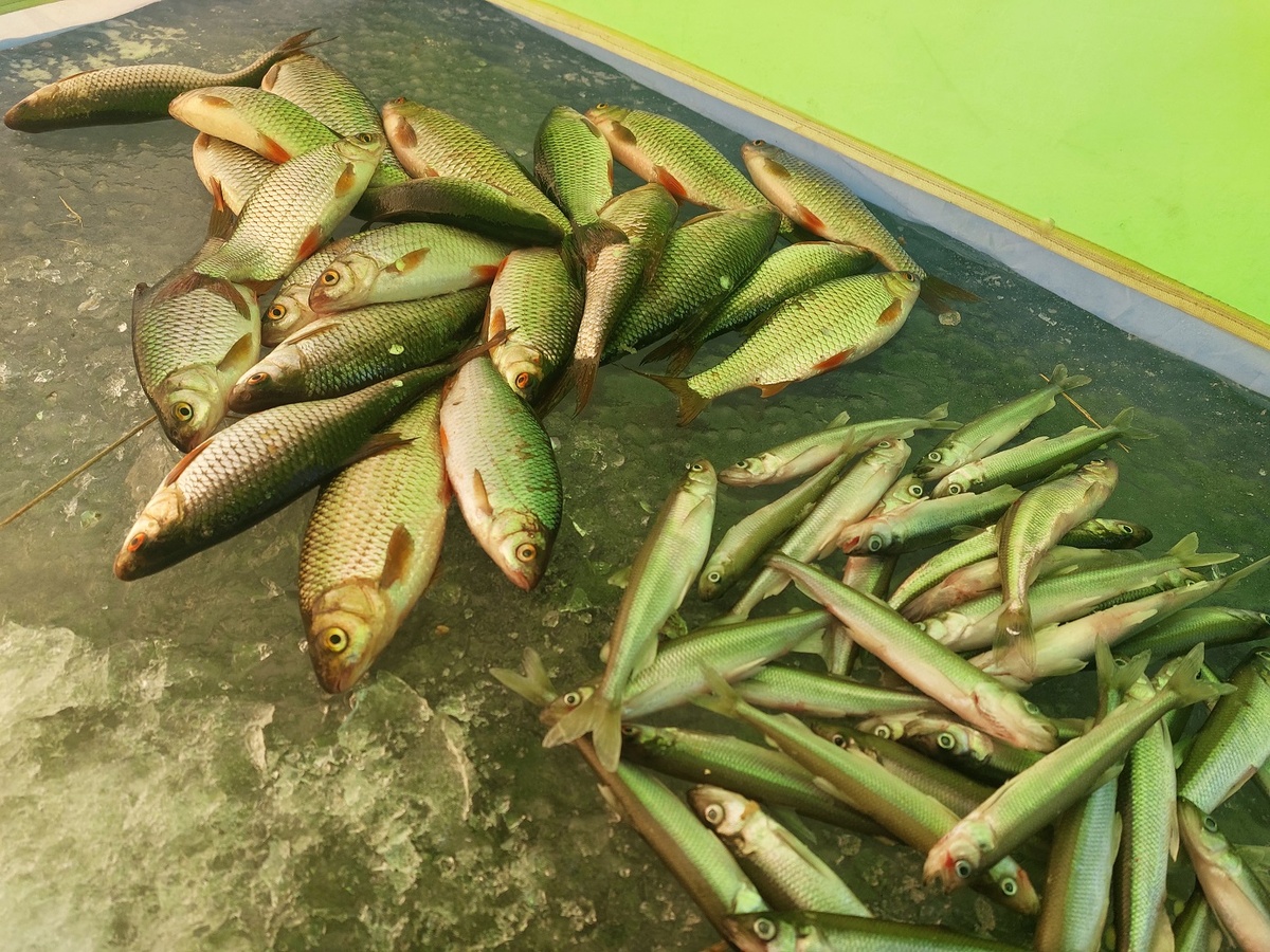 Мормышки ушли на глубину. Начинаются осторожные поклёвки. Без палатки неразличимые. Плотва начинает свой пир. Клюёт жадно и часто. Рыба очень красивая и вкусная. Особенно в вяленом виде с икрой. За пару часов я уже поймал норму. Рыба всё клюёт. Вдруг осторожные поклёвки стихают и начинаются более агрессивные, это клюёт корюшка на опарыша. Корюшки немного, но она приятным бонусом вносит разнообразие в рыбалку.