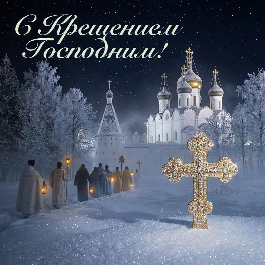 -030. Поздравленiе съ Богоявленiемъ и Святымъ Крещенiемъ Господнимъ! Съ великимъ и свѣтлымъ праздникомъ Богоявленiя и Святаго Крещенiя Господа Бога и Спаса нашего Iисуса Христа сердечно поздравляю васъ! Да озаритъ Господь души ваша свѣтомъ Своего явленiя, яко явися во Iорданѣ Троица Пресвятая, и да ниспошлетъ миръ, тишину и духовное обновленiе. Да очиститъ вода крещенская сердца отъ всякiя скверны, да укрепитъ въ вѣрѣ правой, терпѣнiи и любви христiанской. Пусть благодать Божiя пребудетъ въ домахъ вашихъ, храня отъ всякаго зла и напасти, наставляя на путь правды и спасенiя. Въ сей святой день желаю вамъ здравiя тѣлеснаго и душевнаго, согласiя семейнаго и благословенныхъ трудовъ. Да будетъ жизнь ваша исполнена мира, благочестiя и упованiя на милость Господню. Съ Богоявленiемъ Господнимъ и Святымъ Крещенiемъ! Да освятитъ васъ Господь и да сохранитъ на многiя и благая лѣта. #Богоявленiе #Крещенiе #делавѣры #праздники #7534_2026 * - открытка взята тут.