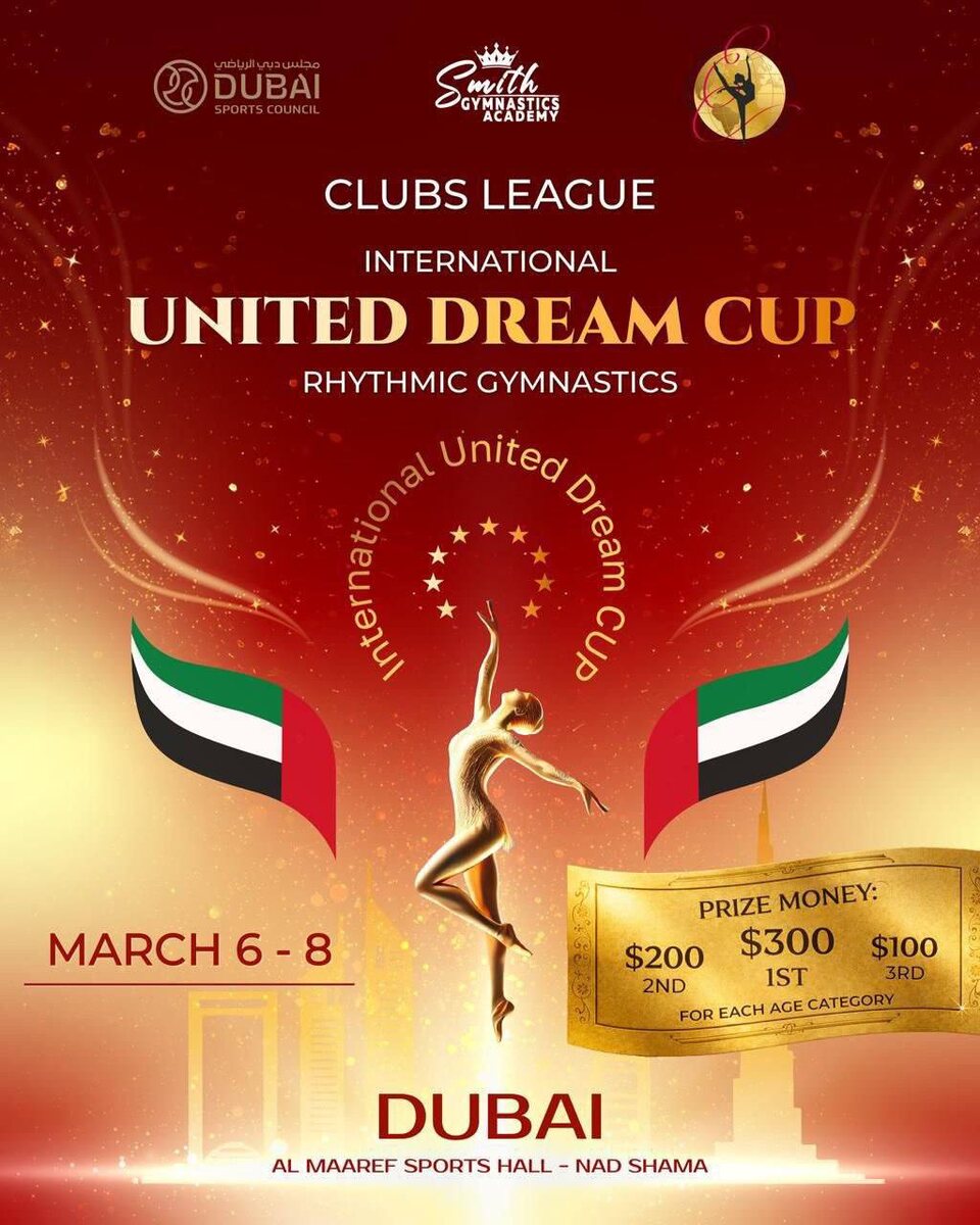 🌍✨ Совсем скоро в Объединённых Арабских Эмиратах, в городе Дубай, пройдут международные соревнования Клубной Лиги — UNITED DREAM CUP 2026! 🗓Дата: 6–8 марта 2026 года 📍Место: ОАЭ, Дубай, 116 St., Nad Shamma Sports Hall🇦🇪 Что ждёт участниц: 🏆Призовой фонд и возможность побороться за денежные призы 🥇Специальные медали для всех участниц 📈Начисление рейтинговых очков Международной Клубной Лиги 🌎Участие гимнасток и клубов из разных стран 🎉Торжественная церемония и праздничная программа для всех участниц ⚡️Главный судья соревнований: Садохина Олеся Вячеславовна⚡️ ✨UNITED DREAM CUP 2026 — это: — Яркий международный старт в системе Клубной Лиги — Возможность укрепить позиции в мировом рейтинге — Новый опыт, спортивные цели и международное признание 📝Регистрация и подробности: на нашем сайте 🇬🇧CLUBS LEAGUE INTERNATIONAL UNITED DREAM CUP 2026 Very soon, the United Arab Emirates, in the city of Dubai, will host the international Club League competitions — UNITED DREAM CUP 2026