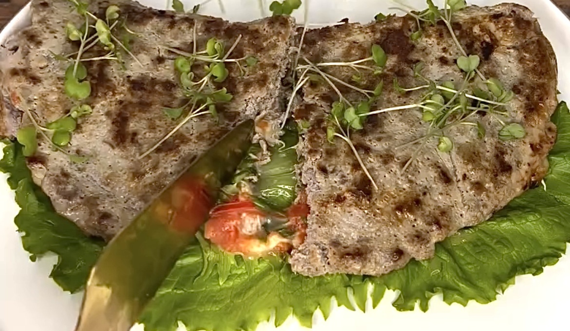 6. Накрыть начинку второй половиной омлета (сложить пополам).