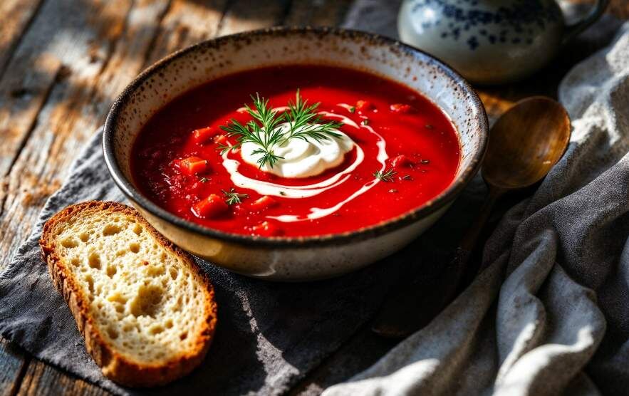 Борщ — это не просто популярное блюдо, но и настоящий природный эликсир здоровья. Врачи утверждают, что он не только утоляет голод, но и поддерживает иммунитет, улучшает работу пищеварительной системы и способствует общему восстановлению организма. Вегетарианский борщ, благодаря высокому содержанию клетчатки и органических кислот, мягко стимулирует работу желудочно-кишечного тракта, помогая организму лучше усваивать питательные вещества. Мясной борщ, в свою очередь, является источником аминокислот и коллагена, которые положительно влияют на состояние суставов, кожи и слизистых оболочек. Если добавить в борщ немного сала, это еще больше повысит его полезные свойства. Сало помогает организму усваивать жирорастворимые витамины, что делает борщ еще более ценным для здоровья. Борщ можно по праву назвать универсальным блюдом, которое не только радует вкусовые рецепторы, но и заботится о нашем здоровье. Секрет вкусного рецепта: Идеальный борщ — это сочетание наваристого бульона и ароматной за