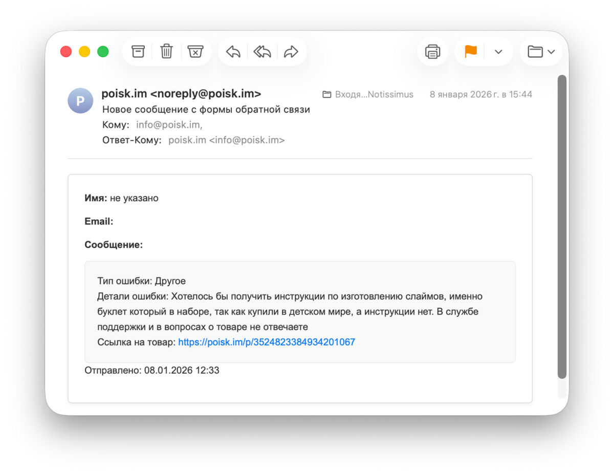 Сделали на poisk.im возможность сообщить об ошибке в описаниях товара, а теперь получаем такие вот сообщения