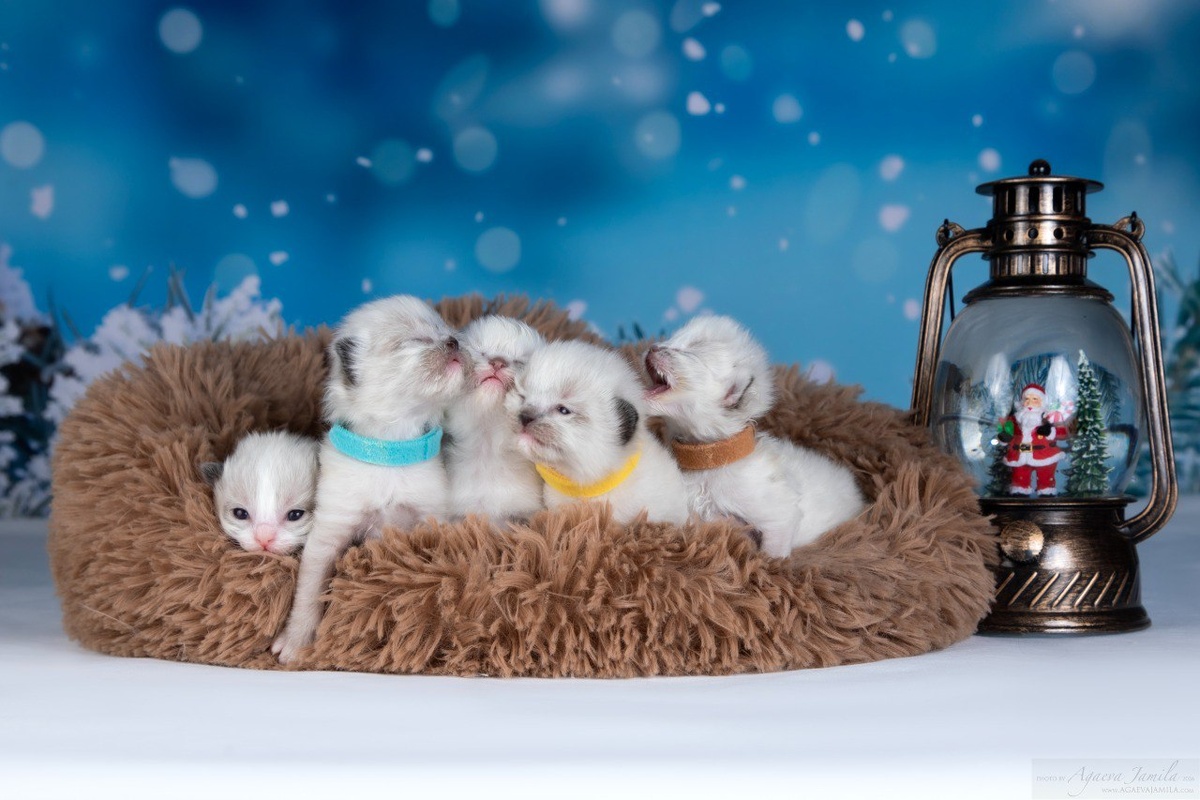 Помните наших новогодних котяток, родившихся за 2 часа до Нового года? Вот они, растут, горластые)) 4 миттеда в папу Морозко и один биколорчик в маму Франческу. Полосатиков не родилось, к сожалению, а так ждали.
