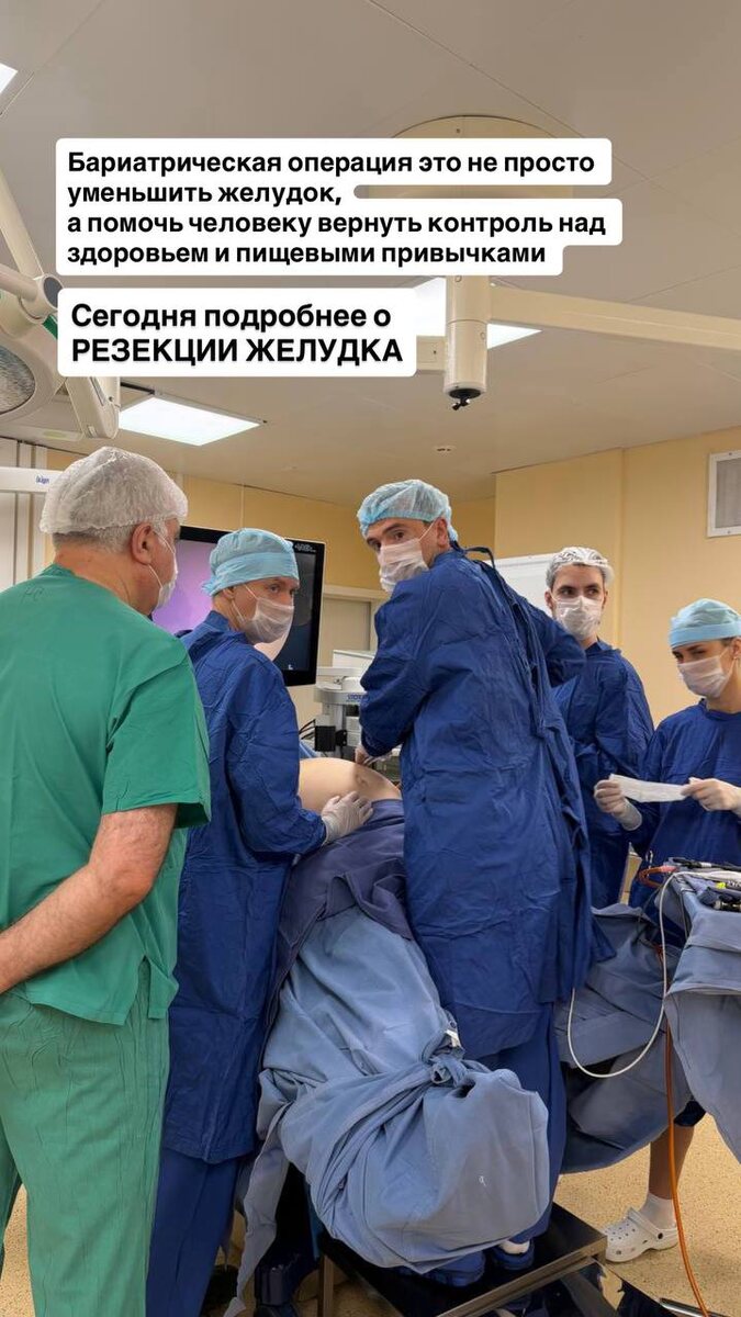 Это операция, которая помогает снизить вес не за счёт силы воли, а за счёт изменений в работе желудка и гормонов. Представьте желудок как мешок. Со временем он может растягиваться и вмещать всё большие порции еды. Из-за этого человек может есть много и часто чувствовать голод. Во время продольной резекции хирург удаляет большую часть желудка — примерно 70–80%. Оставшаяся часть становится узкой и вытянутой, похожей на трубку. ✅ Что важно понимать: — желудок не перевязывают и не сжимают — внутрь ничего не устанавливают — никаких колец или баллонов нет — кишечник остаётся на месте Путь еды остаётся обычным: человек ест → пища попадает в желудок → дальше в кишечник. Просто объём еды становится значительно меньше. В удаляемой части желудка вырабатывается гормон грелин — гормон постоянного чувства голода. После операции его уровень снижается, поэтому большинству пациентов становится легче контролировать аппетит и питание. Операция выполняется через несколько небольших проколов, длится