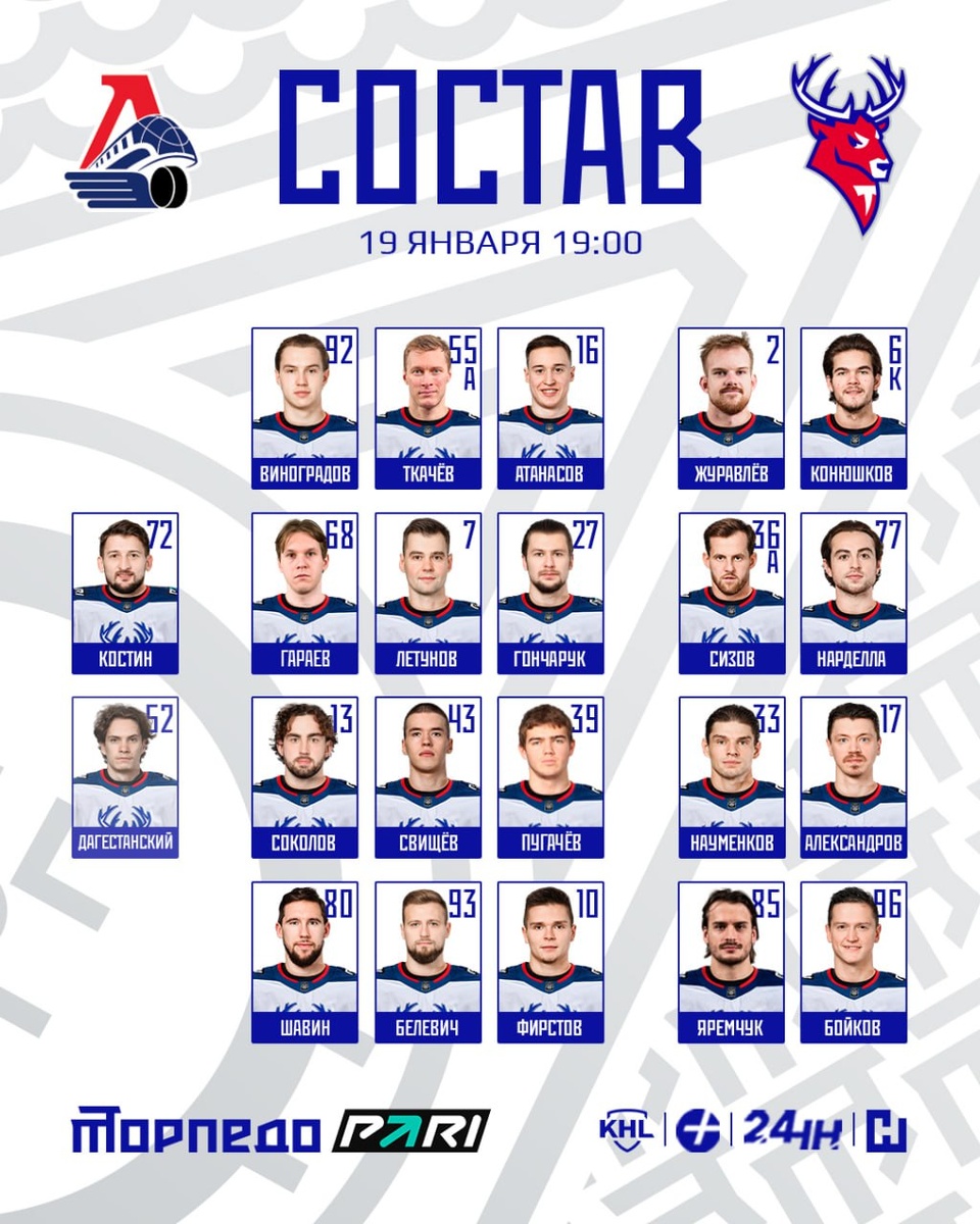 Приветствуем 🦌 Дмитрия Дагестанского в заявке на матч и изучаем состав «Торпедо» на игру в Ярославле 👏