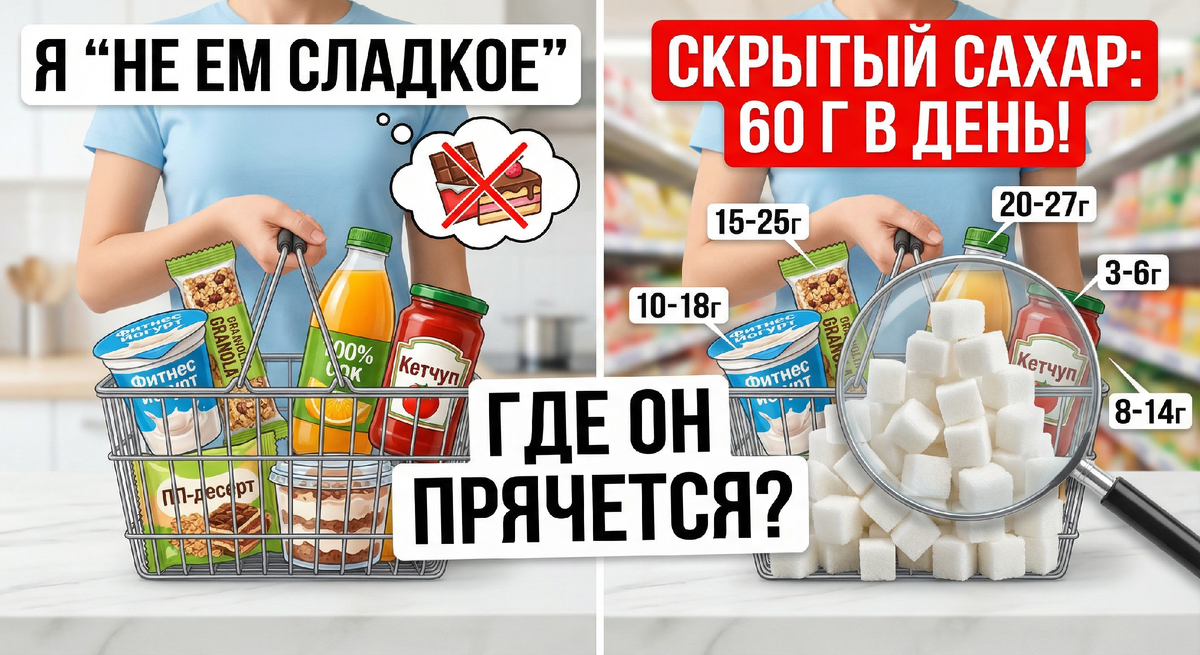 Пока однажды ради интереса не посчитал сахар в обычном дне — выходило около 60 г. Без шоколадок и тортов. Секрет простой: сахар сидит в продуктах, которые выглядят “нормально” или даже “ЗОЖ”. Ниже — 6 категорий, где он чаще всего прячется, с цифрами и понятными заменами. Важно: цифры ниже — средние по рынку, у конкретных брендов могут отличаться. Смотри строку “сахара” на 100 г/100 мл. Сколько сахара: Примеры брендов: Danone/Активиа с наполнителем, Чудо, Danissimo, глазированные сырки.