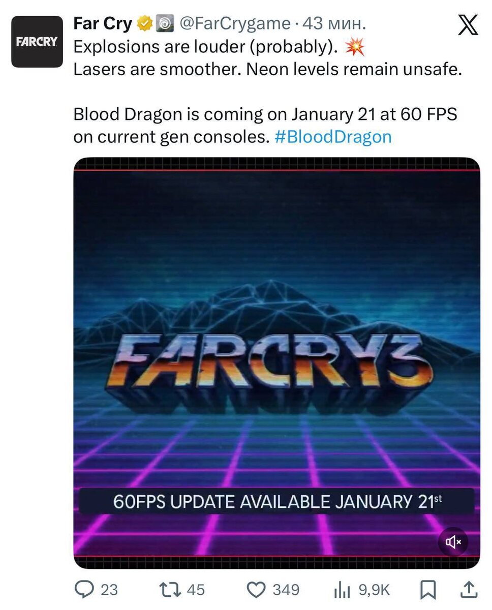 Far Cry 3: Blood Dragon тоже получит 60 FPS на PS5 уже 21 января.