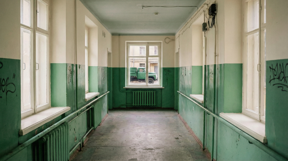 Вы видели это тысячи раз. Поднимаетесь по лестнице хрущёвки или брежневки — и ровно на уровне плеч стена меняет цвет.