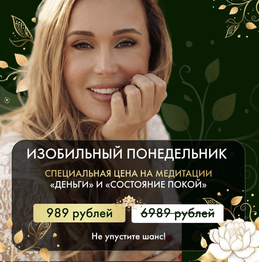 Спеццена на каждую из трех медитаций! БЕРИТЕ ШАНС! 🌟 «Деньги» — практика на состояние изобилия, которая помогает настроиться на волну финансового благополучия и открывает пространство для новых возможностей в вашей жизни. ➰ «Состояние Покой» — это практическое руководство к глубокому расслаблению, восстановлению энергии и ясности сознания. Помогает вернуть внутренний баланс и освободиться от тревоги, мягко погружает в пространство тишины. 🫂 «Встреча с Праотцом Рода» — практика на укрепление связи с Родом. Получите поддержку и благословение предков и освободитесь от негативных родовых сценариев. Erid: 2VtzqvciX9V