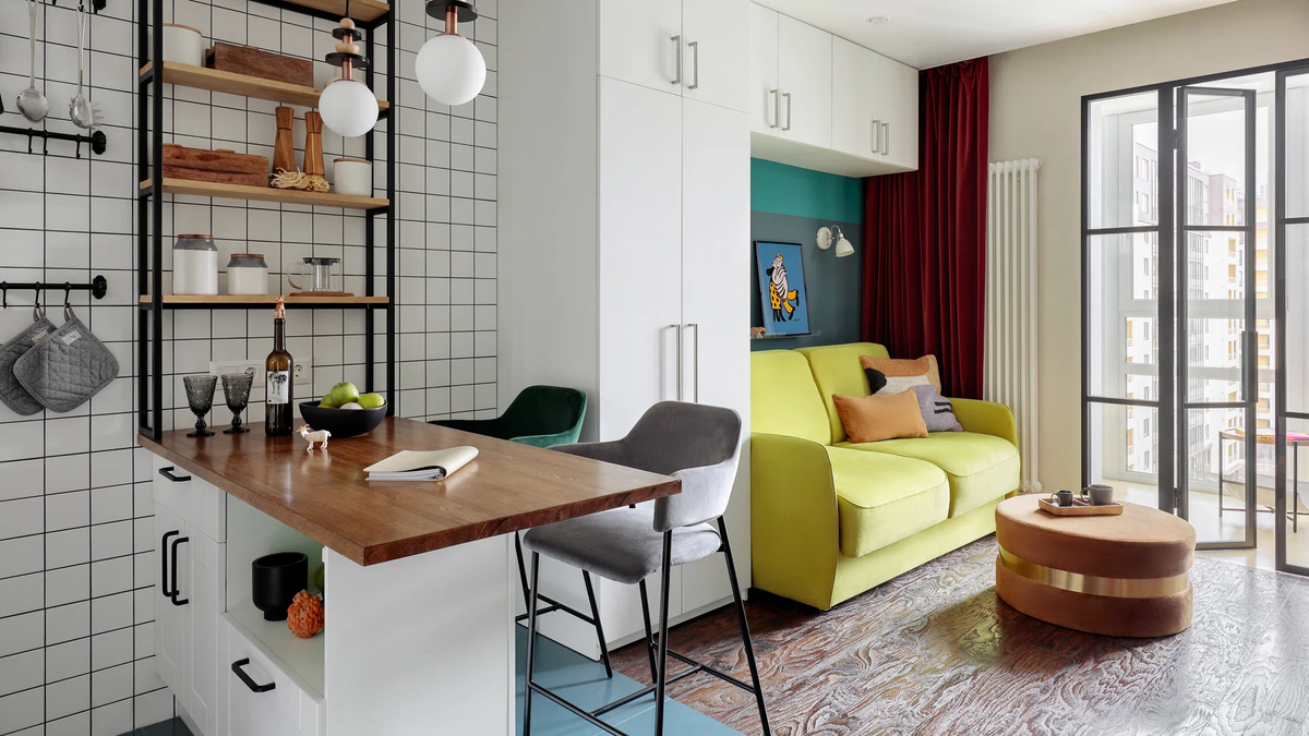 Но и переборщить с белым легко. Мы убедились в этом на своём опыте, когда сделали на него главную ставку в первый раз. В итоге очень быстро заскучали в «холодном» интерьере. Благо, яркие и даже тёмные оттенки тоже вполне уместны в маленьких квартирах. Главное — не бояться экспериментировать.
