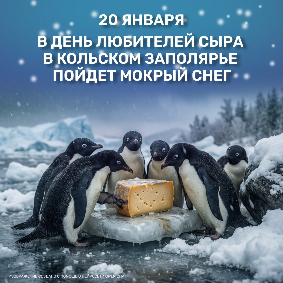 ❄🧊 В Мурманской области 20 января, в День любителей сыра и День осведомленности о пингвинах, ожидается облачная с прояснениями погода и