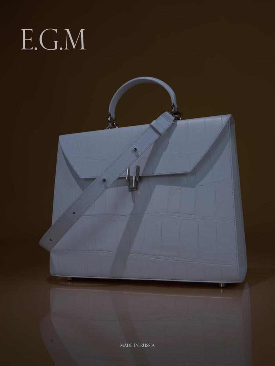 Lara 35 — большая сумка с ручкой сверху, изготовлена из натуральной кожи с тиснением под крокодиловую кожу. Вмещает формат А4.