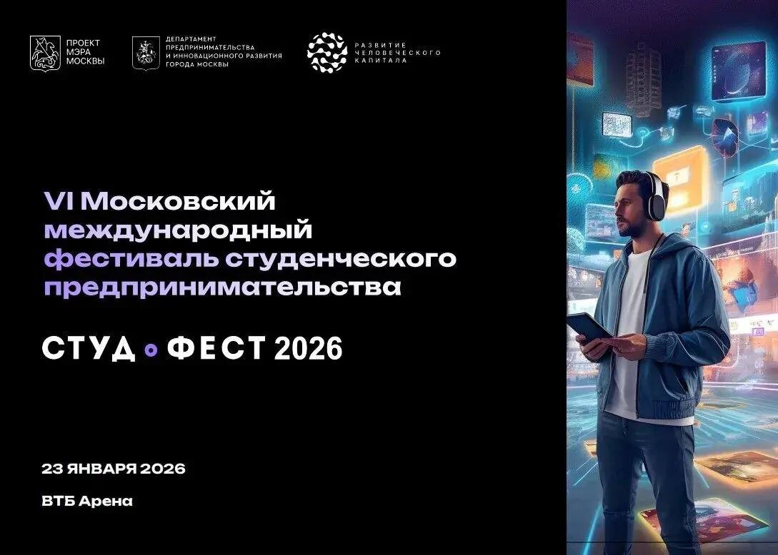 23 января 2026 года в Москве пройдёт VI Московский международный фестиваль студенческого предпринимательства «Студфест». Место проведения: «ВТБ Арена», адрес: Ленинградский проспект, 36. Время проведения: с 12:00 до 22:00 Программа включает деловую, интерактивную и развлекательную части. Участники смогут задать вопросы профессионалам, пообщаться с успешными бизнесменами и получить индивидуальные консультации в менторской гостиной. Задачами Фестиваля являются демонстрация возможностей для развития молодежного предпринимательства в г. Москве и фокус на технологическое предпринимательство, стимулирование внедрения инноваций в бизнес. В рамках Фестиваля состоится праздничное шоу с участием известных предпринимателей, мотивационных спикеров и деятелей шоу-бизнеса, студенческий квест по использованию технологий искусственного интеллекта и развитию предпринимательских компетенций. Обязательная бесплатная регистрация участников на официальном сайте мероприятия https://studfest2026.ru/