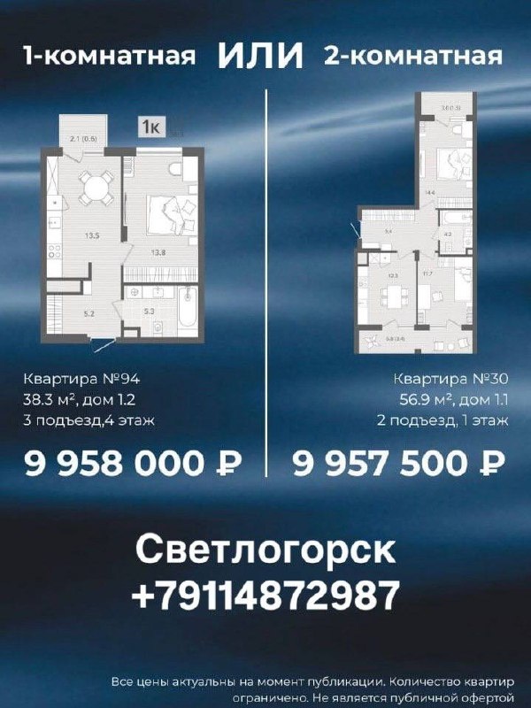Квартиры От застройщика в Светлогорске, семейная ипотека +79114872987 Ольга