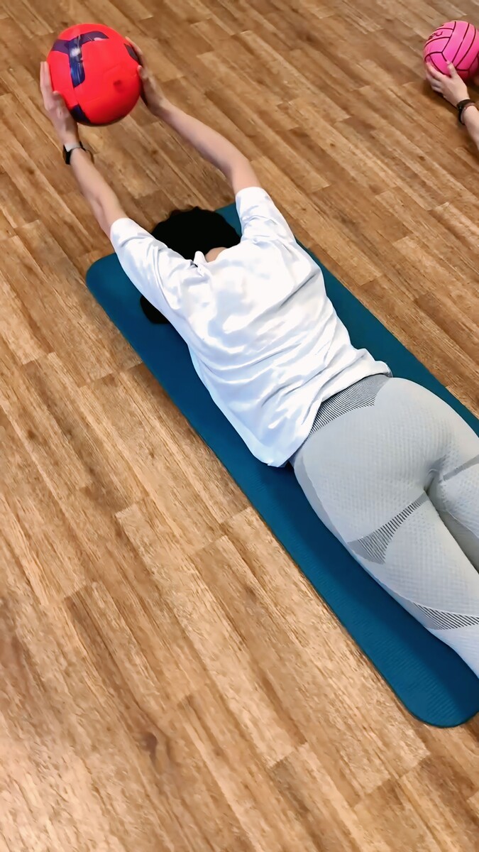 потом групповая ЛФК с инструктором,