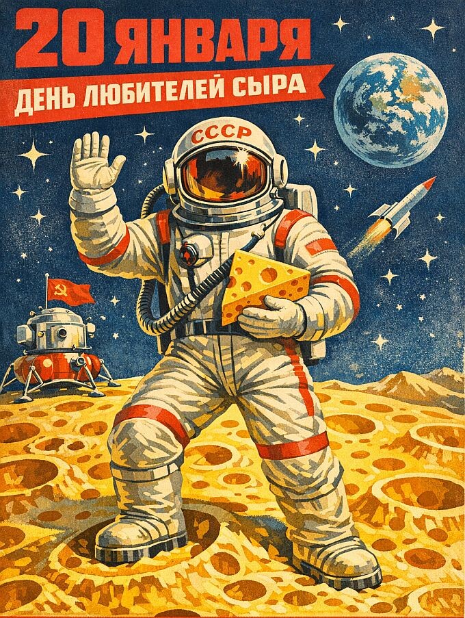 Гурманы и сочувствующие, ликуйте! На календаре 20 января, а значит мир официально захвачен Всемирным днем любителей сыра! 🧀 История этого продукта насчитывает семь тысяч лет, и началась она с эпичного провала древнего кочевника. Кто-то просто забыл молоко в бурдюке из овечьего желудка, а получил гастрономический шедевр. Так человечество усвоило главный жизненный урок: иногда, чтобы стать лучше, нужно просто хорошенько скиснуть и пройти проверку на прочность. Мы с вами помним другую легенду. Великий и ужасный плавленый сырок "Дружба"! Этот брусок в фольге был не просто едой, а культурным кодом и универсальной валютой. Его вкус невозможно забыть, а отделить от упаковки без потерь могли только избранные джедаи советского быта. Вместе с кусочками той самой фольги мы впитывали простую истину о том, что настоящая дружба бывает вязкой, прилипчивой, но питательной. В этот день мы желаем вам жизни выдержанной и благородной, словно пармезан, который видел падение Римской империи. Пусть ваш хара