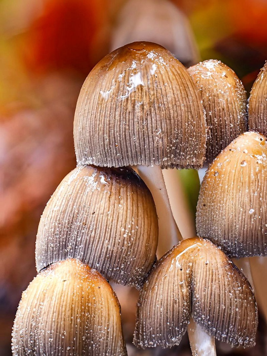 ). ✨ Грибочки словно сияют осенними красками. Они часто растут на или около гниющих деревьев почти круглый год. Их шляпки в молодом возрасте мерцают крошечными текстурами, похожими на слюду, которые ловят свет после дождя и придают им окутанный пылью вид. 💧 По мере созревания шляпки расширяются и блекнут до коричневых и серых оттенков, в конечном итоге превращаясь в черную жидкость. Это процесс, известный как деликвесценция, который позволяет спорам распространяться. 🌳 Эти грибы превращают бревна во временный микрогород. Они растут большими скоплениями, только чтобы вернуться в землю так же быстро, как они выросли. Это отличный гриб для фотографий.