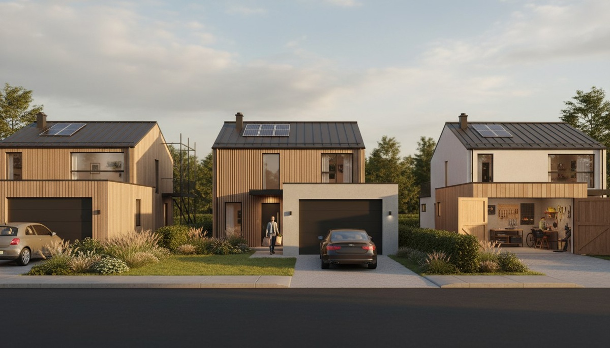 🚗 Встроенный, пристроенный или отдельный — что подойдёт вам? 🛠️ Встроенный — внутри контура дома: тёплый вход, общая инженерия, не «съедает» участок, можно надстроить. Пристроенный — примыкает одной стеной: компромисс по бюджету и удобству, легко расширять. Отдельный — для мастерской, хранения и тишины; строят позже, когда понятны привычки. Какая цель у вашего гаража? Мы подскажем оптимальный формат. 🌿 Итого: компактный участок — встроенный; гибкость — пристроенный; хобби и тишина — отдельный.