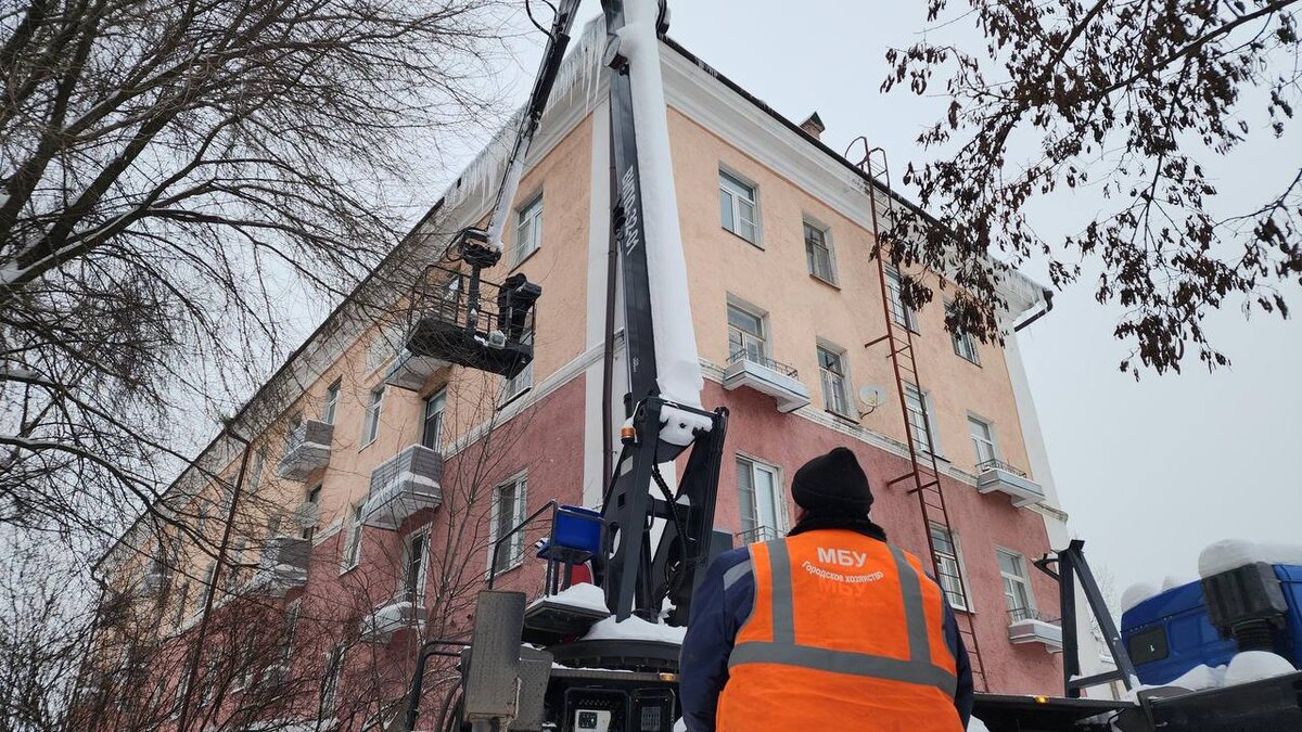 🧊 Администрация показала, как коммунальщики очищали кровли от наледи и сосулек на улицах Горького и Суворова