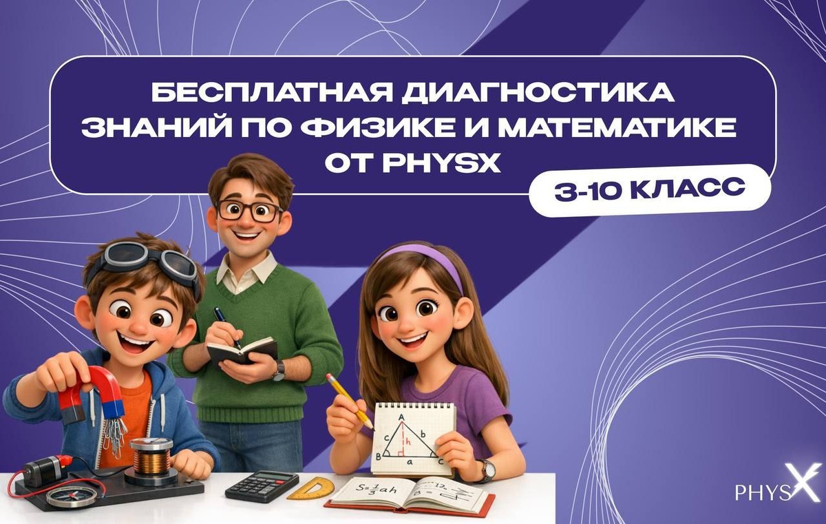 ! Вы уверены, что ребёнок освоил все темы первого полугодия? Или кажется, что всё в порядке, пока трудности не всплывают на олимпиадах или контрольных? Главная причина — отсутствие точного понимания уровня знаний и проблемных тем. 💡 С 19 по 25 января PhysX проводит бесплатную онлайн-диагностику с разборами от лучших педагогов школы, а также возможностью записи на диагностическое занятие и живой обратной связью от преподавателя. Эта диагностика покажет реальную картину знаний ребёнка и поможет выбрать правильную траекторию обучения. Для кого: Учеников 3–10 классов, которые хотят оценить результаты, увидеть пробелы и выбрать правильную траекторию обучения. Уровни диагностики: 🖇 3–6 классы — начальный и продвинутый 🖇 5–9 классы — школьный, олимпиадный и высокий 🖇 10 класс — олимпиадный Что вы получите: ✅ Чёткое понимание сильных сторон и пробелов благодаря ответам и комментариям к каждой задаче, доступным сразу после прохождения диагностики. ✅ Видеоразбор каждой задачи от препод