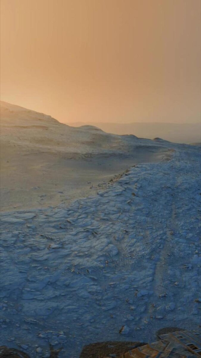 Факт: снимки сделаны 18 ноября 2025 года на 4722-м и 4723-м солах миссии в районе гребня бокворк на склонах горы Шарп. Изображение показывает желтый полдень слева и голубое утро справа, отражая марсианскую атмосферу с оптической толщиной 0,5. Факт: рассвет длится 30 минут, окрашивая небо в синий из-за рассеяния пыли размером 1 мкм, а закат — в желтый при тау=1,2. Это третья подобная открытка после 2021 и 2023 годов, фиксируя эволюцию ландшафта. Факт: Curiosity преодолел 30 км за 13 лет, анализируя сульфаты древнего озера глубиной 100 м в кратере Гейл.