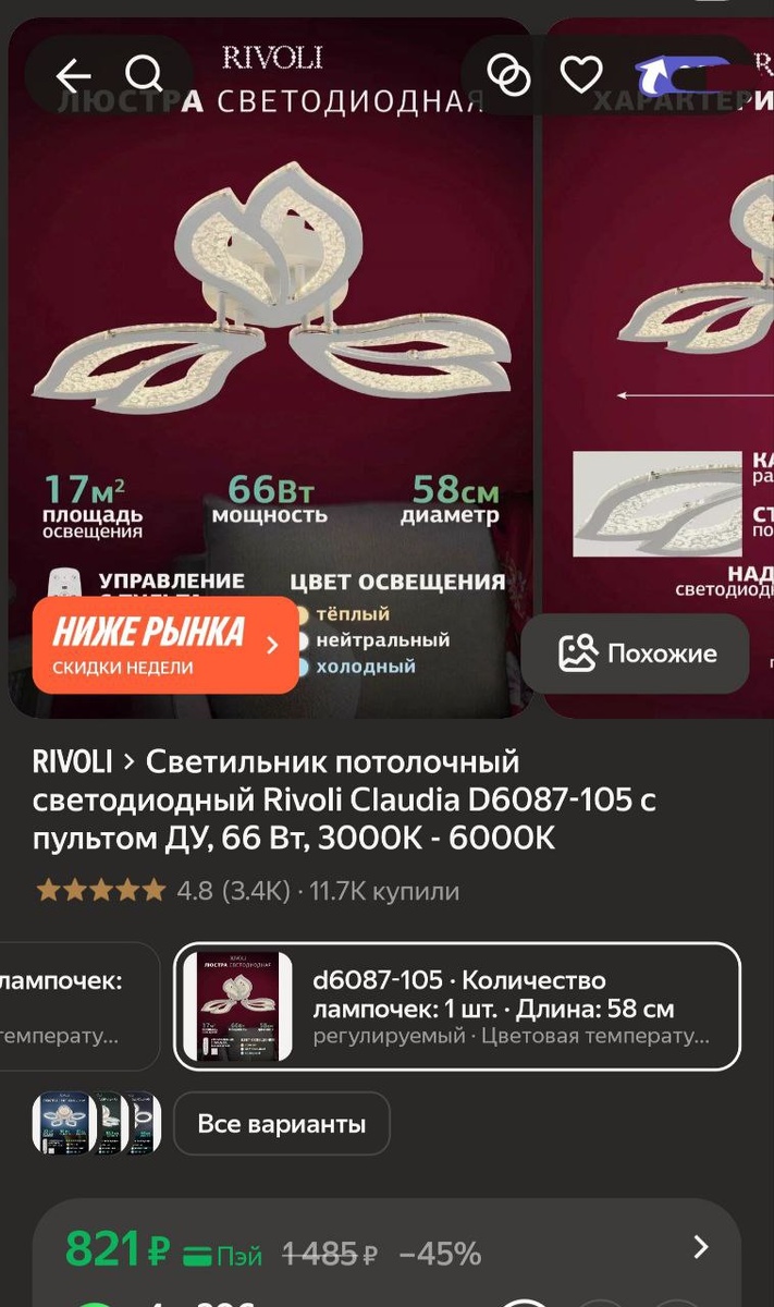 ℹ️Полноценную люстру за 821р видели? Нет? А она есть!