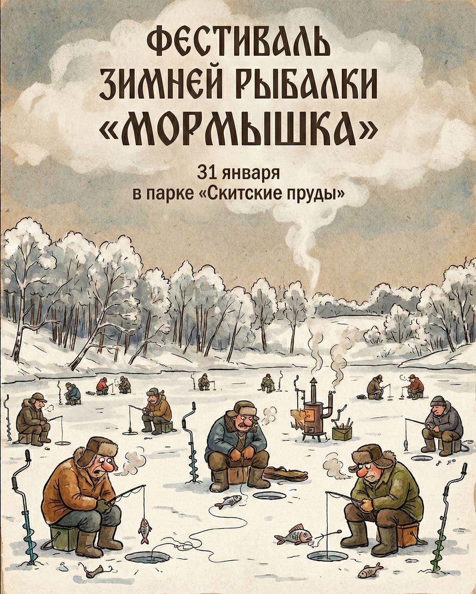 31 января парк «Скитские пруды» станет местом встречи для рыболовов-любителей и профессионалов. Гостей и участников ждёт не только азарт соревнований, но и большая праздничная программа: весёлые конкурсы, анимация и тематические фотозоны. Мастера подлёдного лова поборются за призовые места, в том числе и в почётной номинации «Самая крупная рыба». Оценивать мастерство и улов будут профессиональные спортсмены, вошедшие в состав жюри. Программа мероприятия: 🕙️ 10:00 — Регистрация участников 🕚 11:00 — Старт соревнований 🕐 13:00 — Начало праздника для посетителей парка 🕑 14:00 — Финиш соревнований 🕝 14:40 — Торжественное награждение победителей