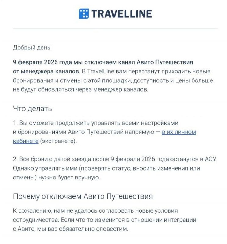 Трэвэлайн отключит Авито от своего менеджера каналов...