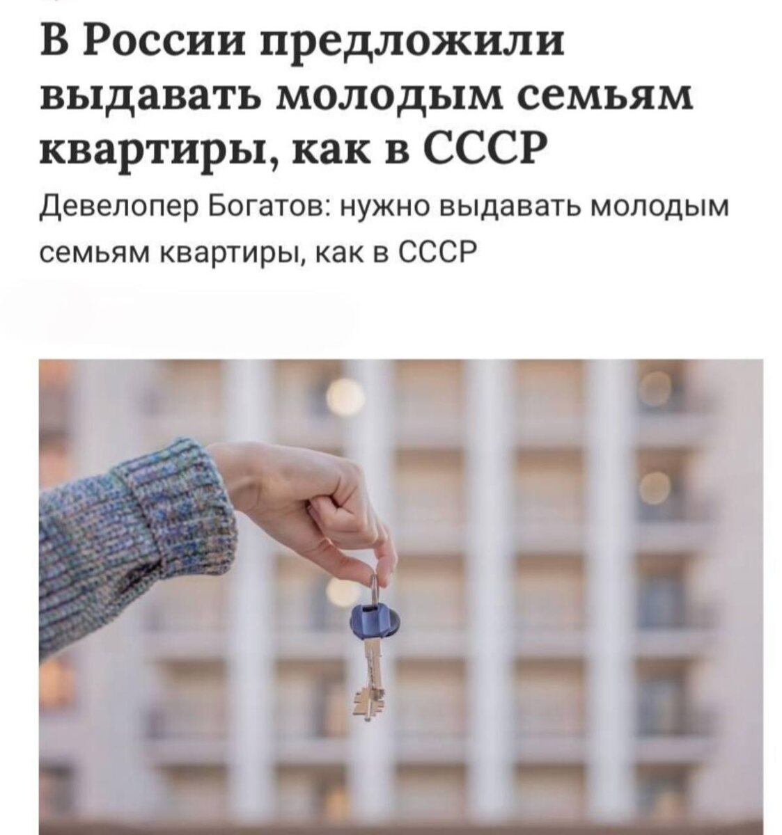⚡️Молодым семьям в России предложили раздавать квартиры, как в СССР.