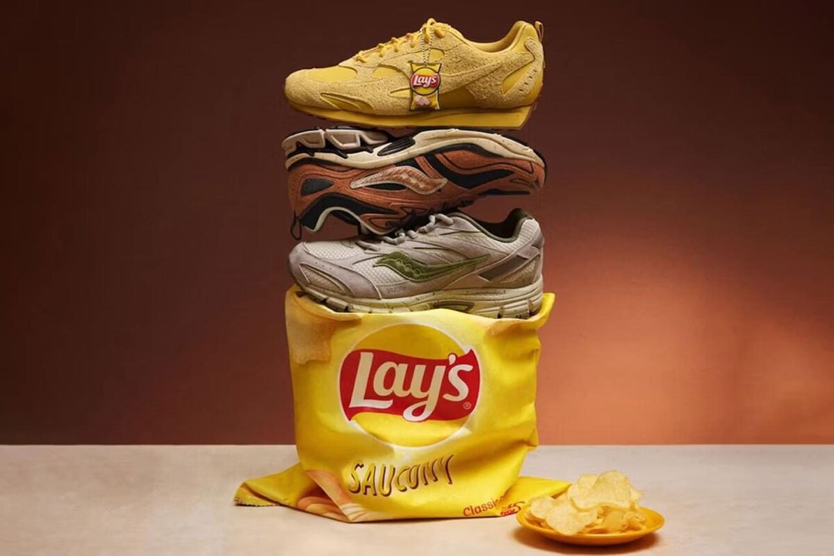 Lay’s объединились с брендом обуви Saucony и превратили эксклюзивные китайские вкусы чипсов в коллекцию кроссовок. Три модели — три вкуса, одна идея: перенести гастрономию в дизайн. Cohesion 2K — холодные серо-зелёные оттенки морских водорослей. Grid Fusion — тёплые коричневые тона в духе острых раков, культового стритфуда Китая. Trainer 80X — прямой привет классической жёлтой пачке Lay’s с солью. Маркетинг который снова работает на уровне ощущений.