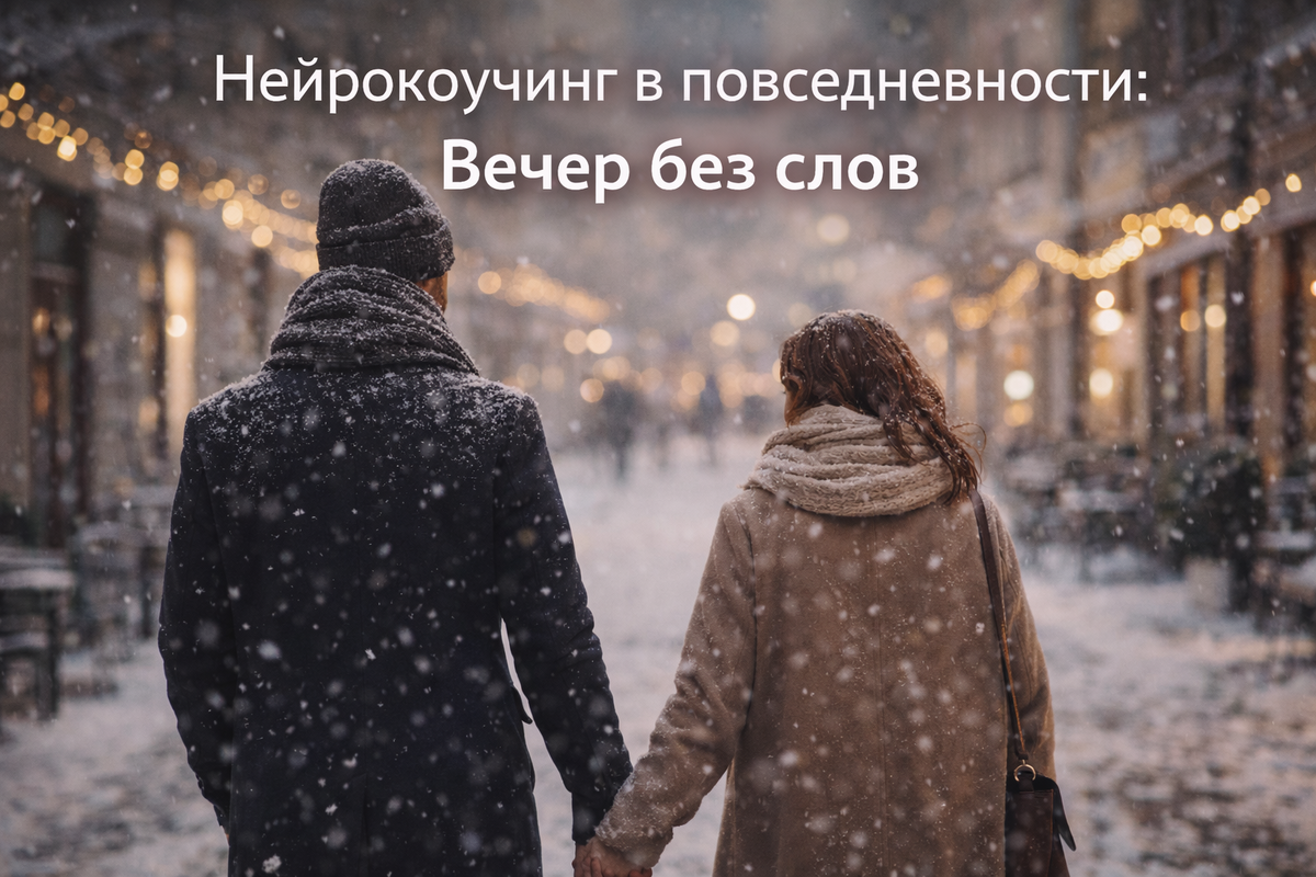 Иногда в такие периоды требуется не новый разговор и не попытка «всё обсудить», а небольшой выход за пределы привычного режима. Это работа с восприятием. Один из самых простых способов сделать её в паре, это вечер без разговоров: кафе или ресторан, тихая музыка, потом прогулка, держась за руку, и минимум слов.