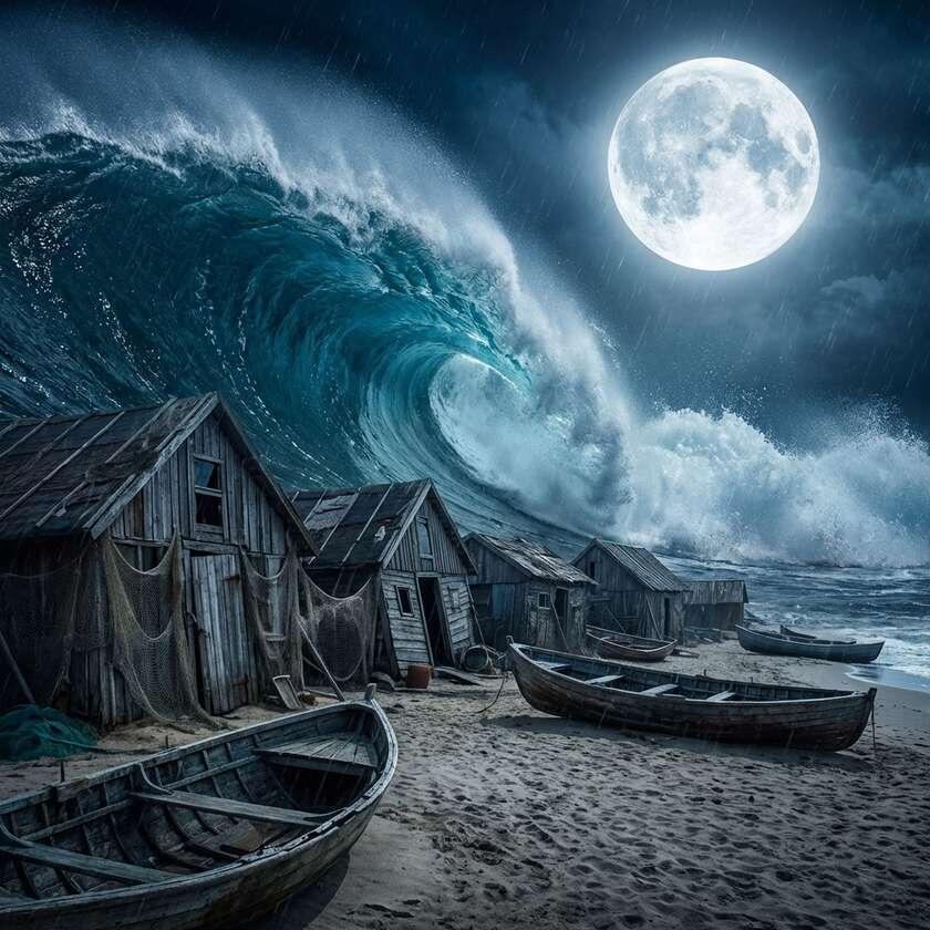 Представьте себе людей, выходящих из укрытий после ночного кошмара. Их мир изменился навсегда. Часть косы отделилась от материка. Деревня оказалась на краю новорождённого пролива.