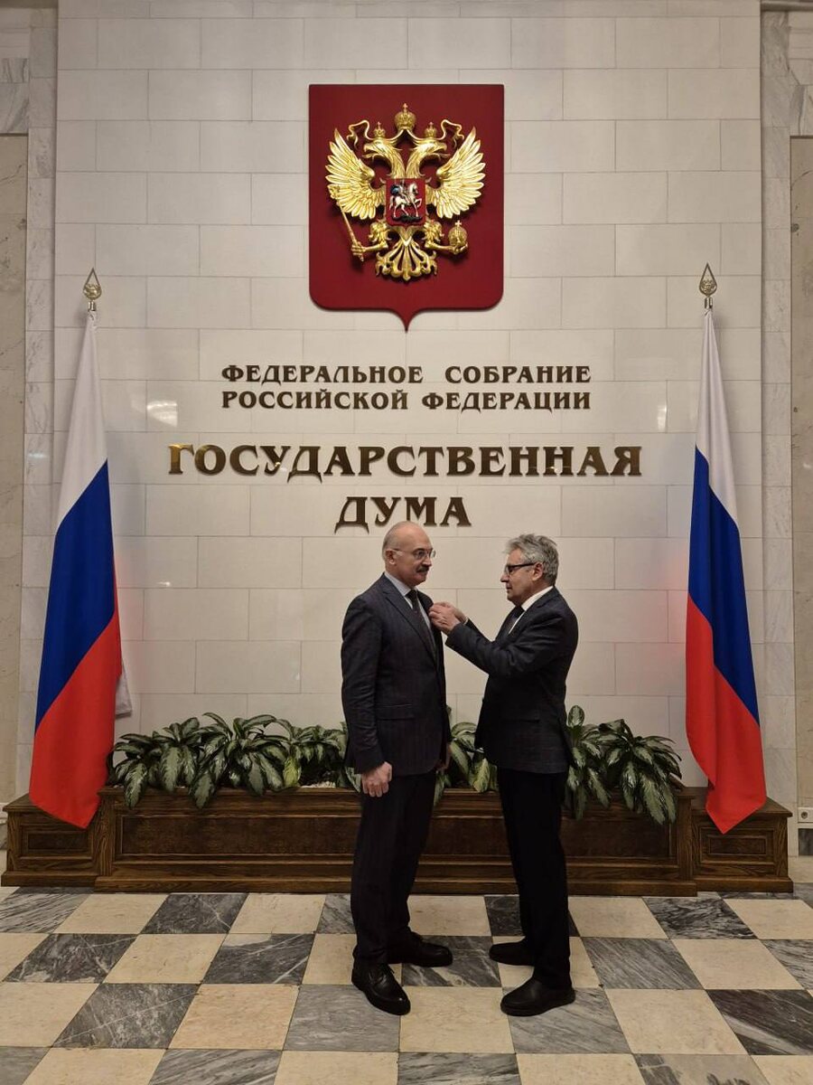 ❗️Научный руководитель Национального центра физики и математики, академик РАН Александр Сергеев от лица руководства ГК «Росатом» вручил юбилейную медаль «80 лет атомной отрасли» председателю комитета Госдумы по науке и высшему образованию Сергею Кабышеву. 💬В сообщении говорится, что награда вручена за многолетний добросовестный труд и высокий профессионализм в связи с 80-летием со дня образования атомной промышленности. ➡️Отметим, что какой-то особый интерес конкретно применительно к атомной отрасли у Сергея Кабышева не замечали, но однозначно согласны с тем, что он ведет системную работу по совершенствованию законодательства в интересах научно-технологического развития. 🔗Подробнее. #новостиНОП 📱 НОП - Научно-образовательная политика